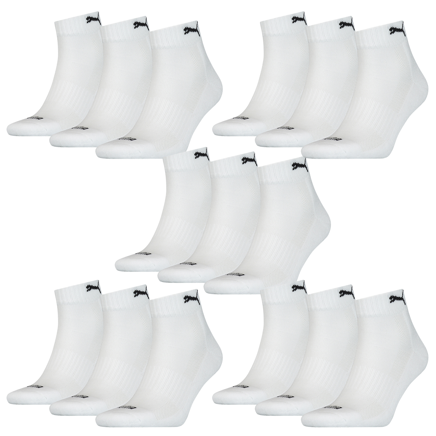 15 Paar Puma Quarter Socken mit Frottee-Sohle Gr. 35 – 46 Unisex Cushioned Kurzs…