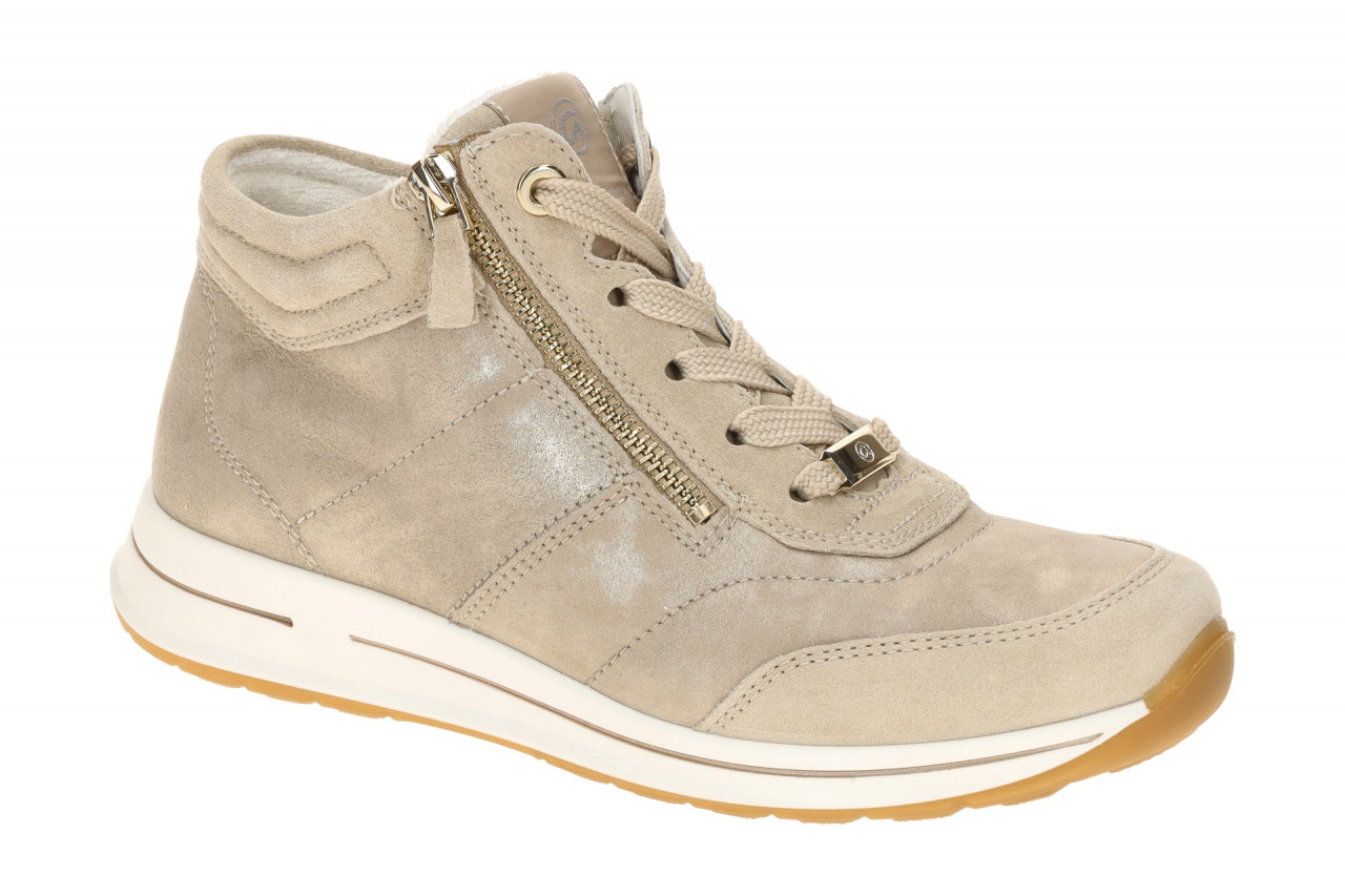 Hersteller: ara Hersteller Art-Nr.: 12-24808 38 Modellname: OSAKA 2.0 Machart: Damenschuhe – sportliche Schn?r- Halbschuhe, Mid Cut Sneaker Farbe: beige + metallic Schimmer in gold + Sohle in wei? + hellbraun (beach/shell) Obermaterial: Echtleder – Velour – Rauhleder (Kalbvelour, Nuvolakid – metallic Schimmer) Innenfutter: Textil – weich gepolstert, auf Bambusbasis Innensohle: Textil Komfort Fu?bett, High Soft Wechselfu?bett: Ja – herausnehmbare Innensohle Laufsohle: TPU Sohle – leicht, flexibel und bequem Verschluss: Schn?rung und Rei?verschluss, 2fach RV Absatzart: flach – kein Absatz, Keil 1,5cm Schuhform: rund Gr??enhinweis: f?llt normal aus Weitenangabe: H – Extra Weit Herstellerinformationen ara shoes GmbH | Zur Schlenkhecke 4, 40764 Langenfeld Kontakt: info@ara-shoes.de interne Artikelnummer f?r Ihre R?ckfragen: 236-40-0152