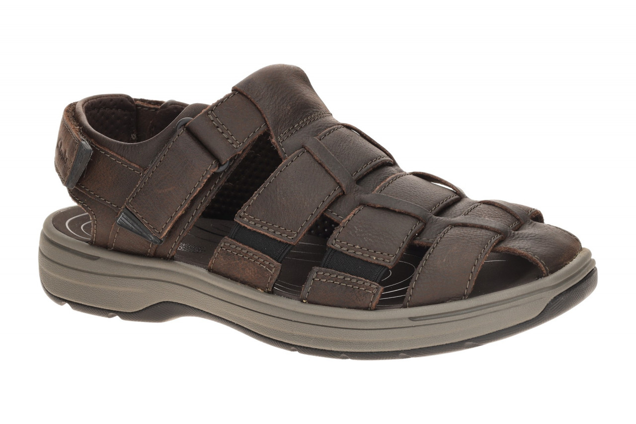 Hersteller: Clarks Hersteller Art-Nr.: 26176900 7 Modellname: SALTWAY COVE Machart: Herren Sandale – bequeme Sandaletten, geschlossene Sandale Farbe: dunkelbraun + Sohle in taupe + schwarz (dark brown) Obermaterial: Fettleder (Leather, 2 Riemen mit Gummizug-Einsatz) Innenfutter: Textil Innensohle: Synthetik Fu?bett, CONTOUR CUSHION Wechselfu?bett: nicht herausnehmbare Innensohle Laufsohle: Gummisohle Verschluss: Klettverschluss, 2fach Klett Absatzart: flach – kein Absatz Schuhform: rund Gr??enhinweis: f?llt normal aus Weitenangabe: G – normal Weite Herstellerinformationen BO CLARKS SHOES BENELUX BV | Atomiumsquare 161 14, 1020 Br?ssel Kontakt: https://customercare.clarks.com/hc/de-de/requests/new/ | 0044 0330 052 5306 interne Artikelnummer f?r Ihre R?ckfragen: 188-31-0014