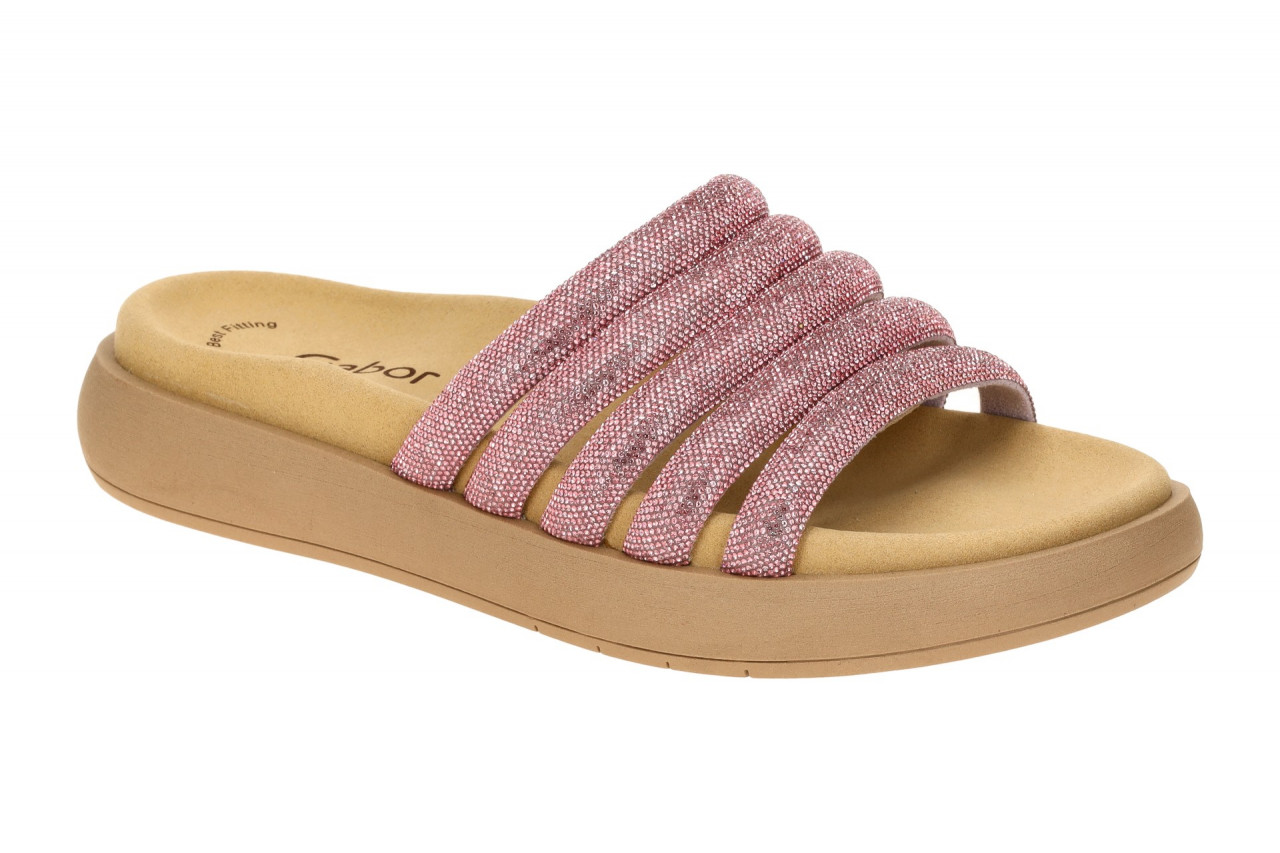 Hersteller: Gabor Hersteller Art-Nr.: 63.752.80 Modellname: 63.752 – Gabor BEST FITTING Machart: Damenschuhe – bequeme Pantoletten Farbe: rosa + braun (soft pink) Obermaterial: Synthetik (Strass HT) Innenfutter: Textil Innensohle: Textil Komfort Fu?bett Wechselfu?bett: nicht herausnehmbare Innensohle Laufsohle: Gummisohle, ca. 2cm Plateau Absatzart: flach – kein Absatz, ca. 1cm Keil Schuhform: rund Gr??enhinweis: f?llt normal aus Weitenangabe: F – normal Weite Herstellerinformationen Gabor Shoes GmbH | Joachim-Gabor-Platz 1, 83024 Rosenheim Kontakt: info@gabor.de | 0049 8031 801-0 interne Artikelnummer f?r Ihre R?ckfragen: 271-58-0009