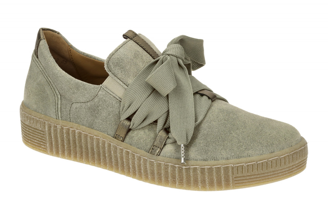 Hersteller: Gabor Hersteller Art-Nr.: 73.333.11 Modellname: 73.333 – Gabor Best Fitting Machart: Damenschuhe – sportliche Slipper – Halbschuhe Farbe: gr?n + hellbraun (salvia) Obermaterial: Echtleder – Velour – Rauhleder (Samtchevr. / Cervo) Innenfutter: Echtleder und Textil Innensohle: Echtleder Komfort Fu?bett Wechselfu?bett: Ja – herausnehmbare Innensohle Laufsohle: Gummisohle Verschluss: Gummizug – ohne Verstellm?glichkeit, + Deko-Senkel Absatzart: flach – kein Absatz Schuhform: rund Gr??enhinweis: f?llt normal aus Weitenangabe: F – normal Weite Herstellerinformationen Gabor Shoes GmbH | Joachim-Gabor-Platz 1, 83024 Rosenheim Kontakt: info@gabor.de | 0049 8031 801-0 interne Artikelnummer f?r Ihre R?ckfragen: 246-70-0015