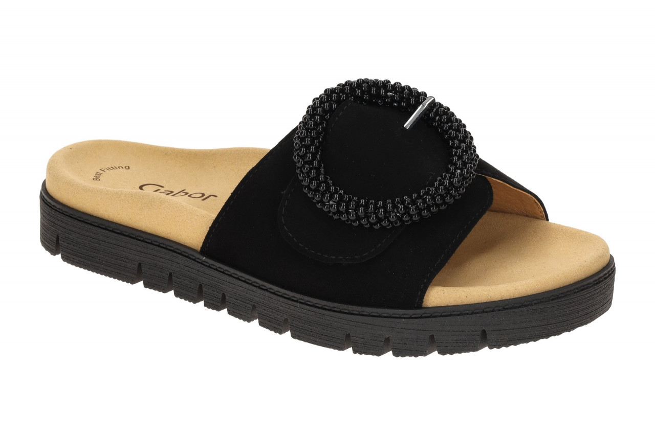 Hersteller: Gabor Hersteller Art-Nr.: 83.745.17 Modellname: 83.745 – Gabor BEST FITTING Machart: Damen Pantoletten – Pantolette Farbe: schwarz + braun (schwarz) Obermaterial: Echtleder – Velour – Rauhleder (Samtchevreau) Innenfutter: Echtleder Innensohle: Textil Komfort Fu?bett Wechselfu?bett: nicht herausnehmbare Innensohle Laufsohle: Gummisohle, Plateau ca. 2,5cm Verschluss: Klettverschluss Absatzart: flach – kein Absatz, Keil ca. 1cm Schuhform: rund Gr??enhinweis: f?llt normal aus Weitenangabe: F – normal Weite Herstellerinformationen Gabor Shoes GmbH | Joachim-Gabor-Platz 1, 83024 Rosenheim Kontakt: info@gabor.de | 0049 8031 801-0 interne Artikelnummer f?r Ihre R?ckfragen: 271-00-0038