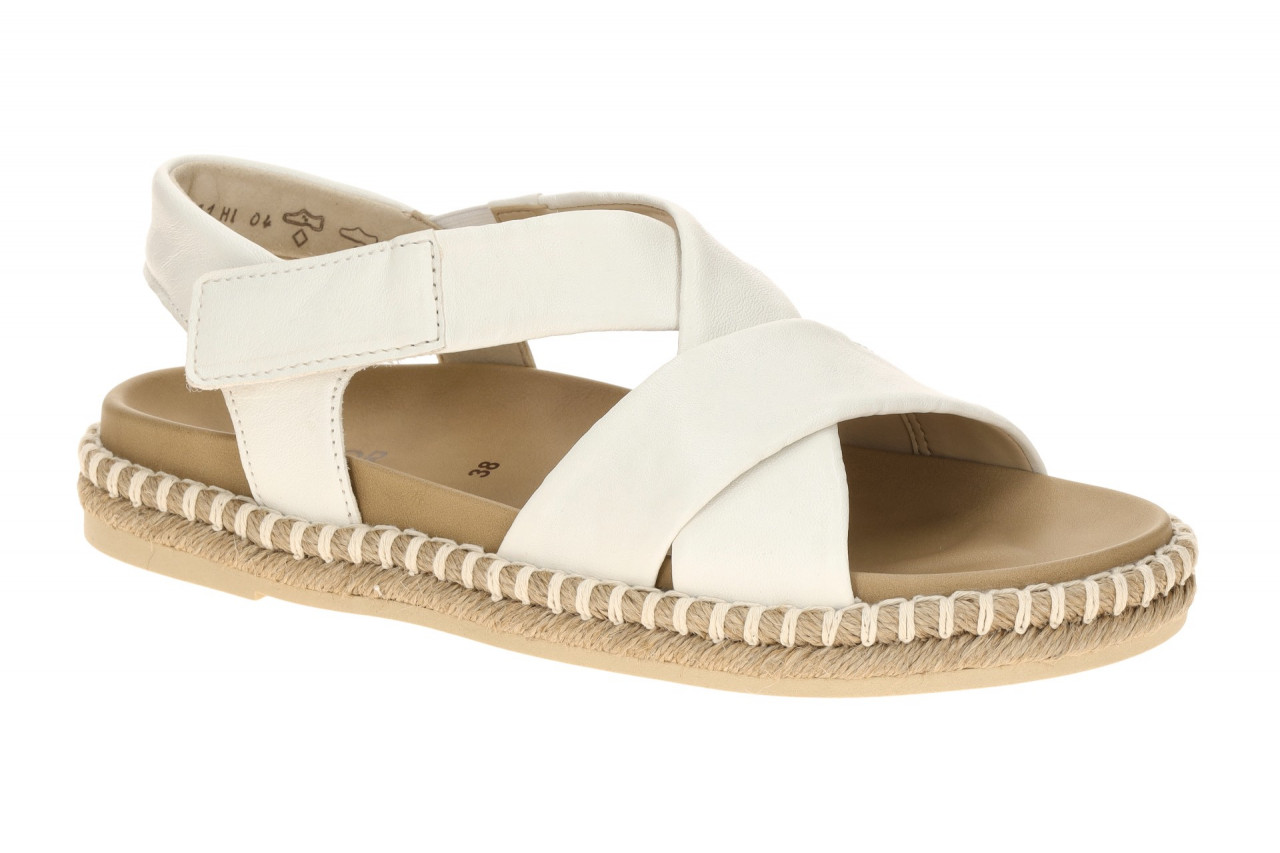 Hersteller: Gabor Hersteller Art-Nr.: 83.781.20 Modellname: 83.781 – Gabor BEST FITTING Machart: Damen Sandalette – Riemchen Sandalen, Kreuzriemen Sandalen Farbe: wei? + Sohle in beige (latte) Obermaterial: Echtleder – Glattleder (Nappa Nava, Bast Rahmen) Innenfutter: Synthetik Innensohle: Synthetik Fu?bett, Kunstleder, anatomisch ausgeformt Wechselfu?bett: nicht herausnehmbare Innensohle Laufsohle: Gummisohle Verschluss: Klettverschluss Absatzart: Blockabsatz Absatzh?he: kleiner Absatz, ca. 0,3cm Schuhform: rund Weitenangabe: G – normal Weite Herstellerinformationen Gabor Shoes GmbH | Joachim-Gabor-Platz 1, 83024 Rosenheim Kontakt: info@gabor.de | 0049 8031 801-0 interne Artikelnummer f?r Ihre R?ckfragen: 284-10-0012 Ihre Gr??e ist nicht verf?gbar? Nicht verf?gbare Artikel sind voraussichtlich ab 20.04.2026 wieder auf Lager. Vielen Dank f?r Ihre Geduld!
