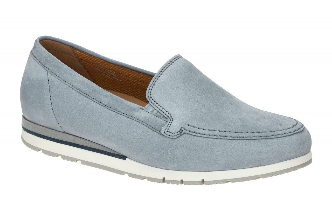 Hersteller: Gabor Hersteller Art-Nr.: 62.414.26 Modellname: FLORENZ – GABOR comfort Machart: Damenschuhe – bequeme Slipper – Halbschuhe Farbe: hellblau + Sohle in wei? + blau + grau (heaven) Obermaterial: Echtleder – Nubuck (Soft Nubuk) Innenfutter: Textil Innensohle: Echtleder – Fu?bett, OptiFit Wechselfu?bett: Ja mit 2 Innensohlen – variable Pa?form Laufsohle: Gummisohle Absatzart: Keilabsatz / Wedge, Keil ca. 1,5cm Absatzh?he: flach Schuhform: rund Gr??enhinweis: f?llt normal aus Weitenangabe: G – normal Weite Herstellerinformationen Gabor Shoes GmbH | Joachim-Gabor-Platz 1, 83024 Rosenheim Kontakt: info@gabor.de | 0049 8031 801-0 interne Artikelnummer f?r Ihre R?ckfragen: 238-86-0041