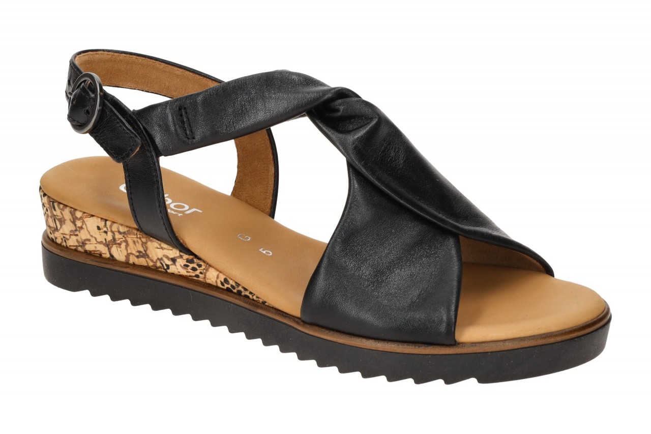 Hersteller: Gabor Hersteller Art-Nr.: 62.751.27 Modellname: GENUA – Gabor comfort Machart: Damen Sandalette – Riemchen Sandalen, T-Steg Sandale Farbe: schwarz + braun (schwarz (KorkTS/schw)) Obermaterial: Echtleder – Glattleder (Lammnappa (LDS)) Innenfutter: Textil – weich gepolstert Innensohle: Echtleder Komfort Fu?bett Wechselfu?bett: nicht herausnehmbare Innensohle Laufsohle: Gummisohle Verschluss: Schnalle Absatzart: Keilabsatz / Wedge, Keil ca. 2,5cm, nachhaltiger Kork Absatzh?he: flach Schuhform: rund Gr??enhinweis: f?llt normal aus Weitenangabe: G – normal Weite Herstellerinformationen Gabor Shoes GmbH | Joachim-Gabor-Platz 1, 83024 Rosenheim Kontakt: info@gabor.de | 0049 8031 801-0 interne Artikelnummer f?r Ihre R?ckfragen: 288-00-0097 Ihre Gr??e ist nicht verf?gbar? Nicht verf?gbare Artikel sind voraussichtlich ab 10.02.2026 wieder auf Lager. Vielen Dank f?r Ihre Geduld!