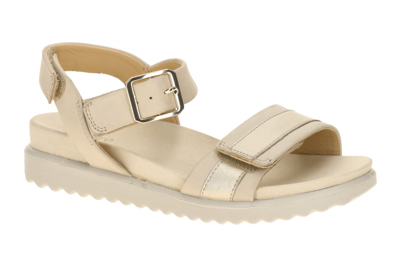 Hersteller: Legero Hersteller Art-Nr.: 2-000453-4100 Modellname: MOVE Machart: Damen Sandale – Sandaletten, Fesselriemchen Farbe: beige + Sohle in hellgrau (tasso (beige)) Obermaterial: Echtleder – Nubuck (Nubuk, Effektleder – Metallic) Innenfutter: Echtleder Innensohle: Textil Komfort Fu?bett Wechselfu?bett: nicht herausnehmbare Innensohle Laufsohle: Polyurethan (PU) – extra leicht und flexibel, Keil ca. 1,5cm, extra felxibel Verschluss: Klettverschluss, 3fach Absatzart: Keilabsatz / Wedge Absatzh?he: flach Schuhform: rund Gr??enhinweis: f?llt normal aus Weitenangabe: G – normal Weite Herstellerinformationen Legero Schuhfabrik GesmbH | Legero-United-Stra?e 4, 8073 Feldkirchen bei Graz Kontakt: kunden-service@legero-united.com | 0049 851 94 90 90 10 interne Artikelnummer f?r Ihre R?ckfragen: 288-40-0037