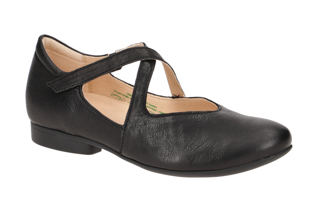 Hersteller: Think Hersteller Art-Nr.: 3-000564-0000 Modellname: GUAD 2 Machart: Damenschuhe – Ballerina – Mary Jane Farbe: schwarz (schwarz) Obermaterial: Echtleder – Glattleder (Kalb – Texano Calf) Innenfutter: Echtleder – weich gepolstert Innensohle: Echtleder Komfort Fu?bett Wechselfu?bett: Ja – herausnehmbare Innensohle Laufsohle: Gummisohle Verschluss: Klettverschluss Absatzart: Blockabsatz Absatzh?he: kleiner Absatz, ca. 1,5cm Schuhform: rund Gr??enhinweis: f?llt normal aus Weitenangabe: G – normal Weite Herstellerinformationen LEGERO Schuhfabrik Gesellschaft m.b.H. | Legero-United-Stra?e 4, 8073 Feldkirchen bei Graz Kontakt: office@legero-united.com interne Artikelnummer f?r Ihre R?ckfragen: 221-00-0095