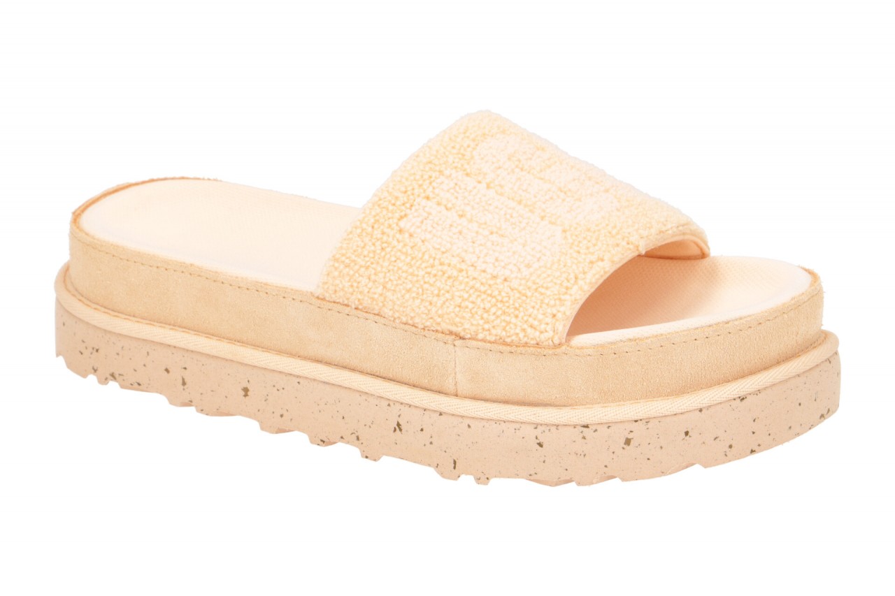 Hersteller: UGG Hersteller Art-Nr.: 1126350 PFTR Modellname: LATON Machart: Damen Pantoletten – Pantolette, Hausschuhe Farbe: rosa (peach fuzz) Obermaterial: Textil (Terry) Innenfutter: Textil – weich gepolstert Innensohle: Textil Fu?bett Wechselfu?bett: nicht herausnehmbare Innensohle Laufsohle: Polyurethan (PU) – extra leicht und flexibel, Plateau ca. 4cm Absatzart: flach – kein Absatz Schuhform: rund Gr??enhinweis: f?llt normal aus Weitenangabe: G – normal Weite Herstellerinformationen UGG Deckers Germany GmbH | Karl-Weinmair-Stra?e 9-11, 80807 M?nchen Kontakt: kundendienst@ugg.com interne Artikelnummer f?r Ihre R?ckfragen: 273-58-0003
